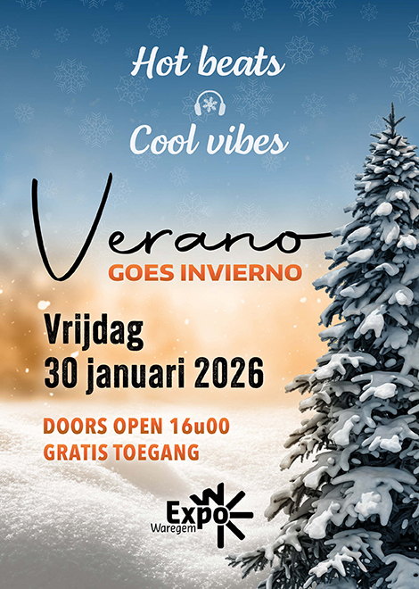 Op vrijdag 30 januari brengt Verano Goes Invierno je naar Waregem expo voor een unieke afterschool / afterwork en avond vol hot beats & cool vibes. 🪩